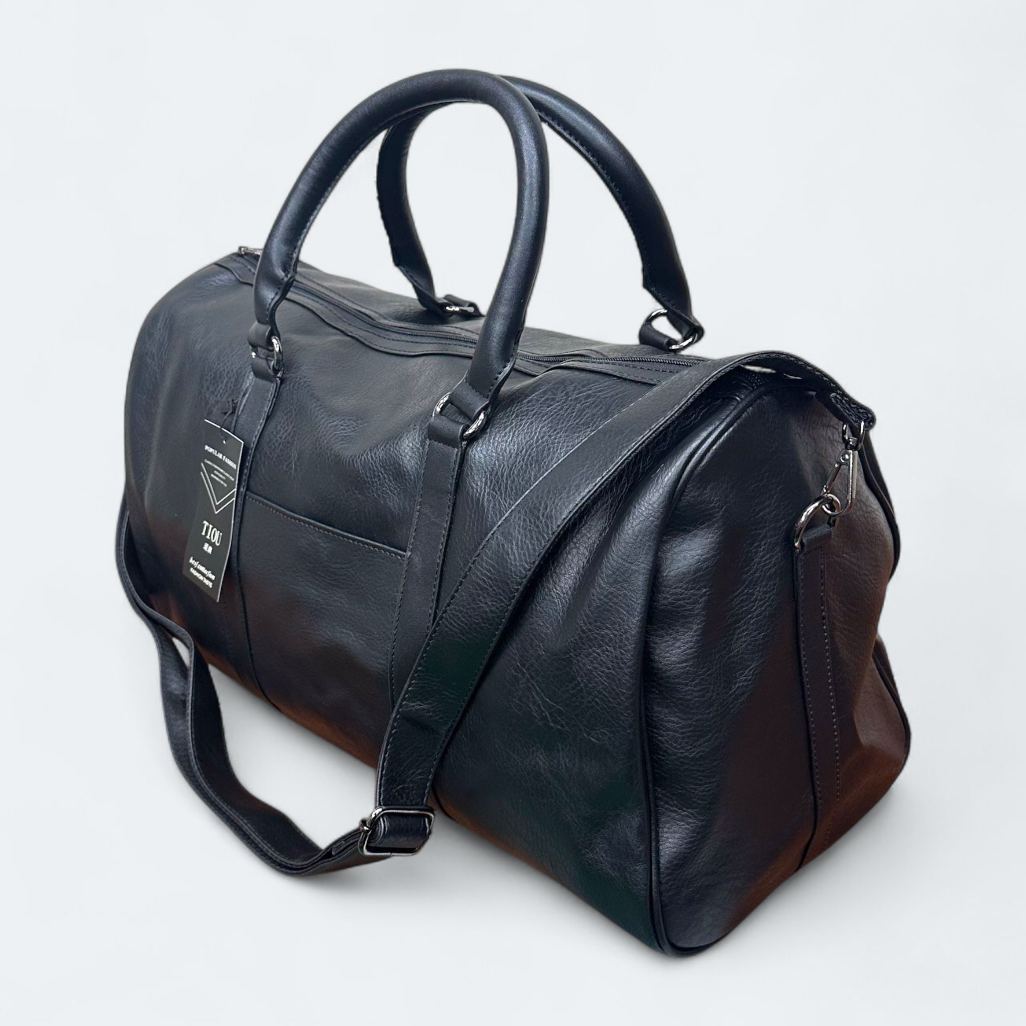 Durable Artificial Leather Black Duffle Bag for Solo Travel