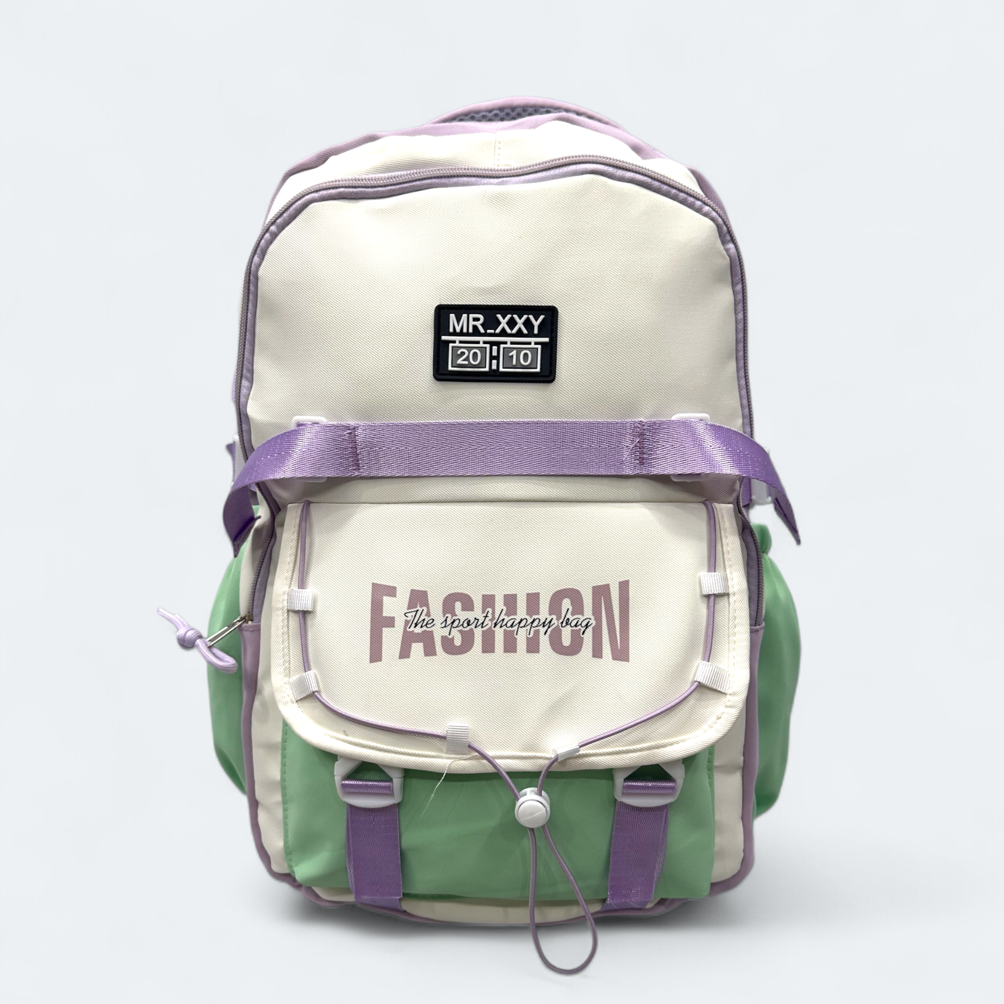 Fashion Design Lightweight School Bag SCB 108 Off White -Green