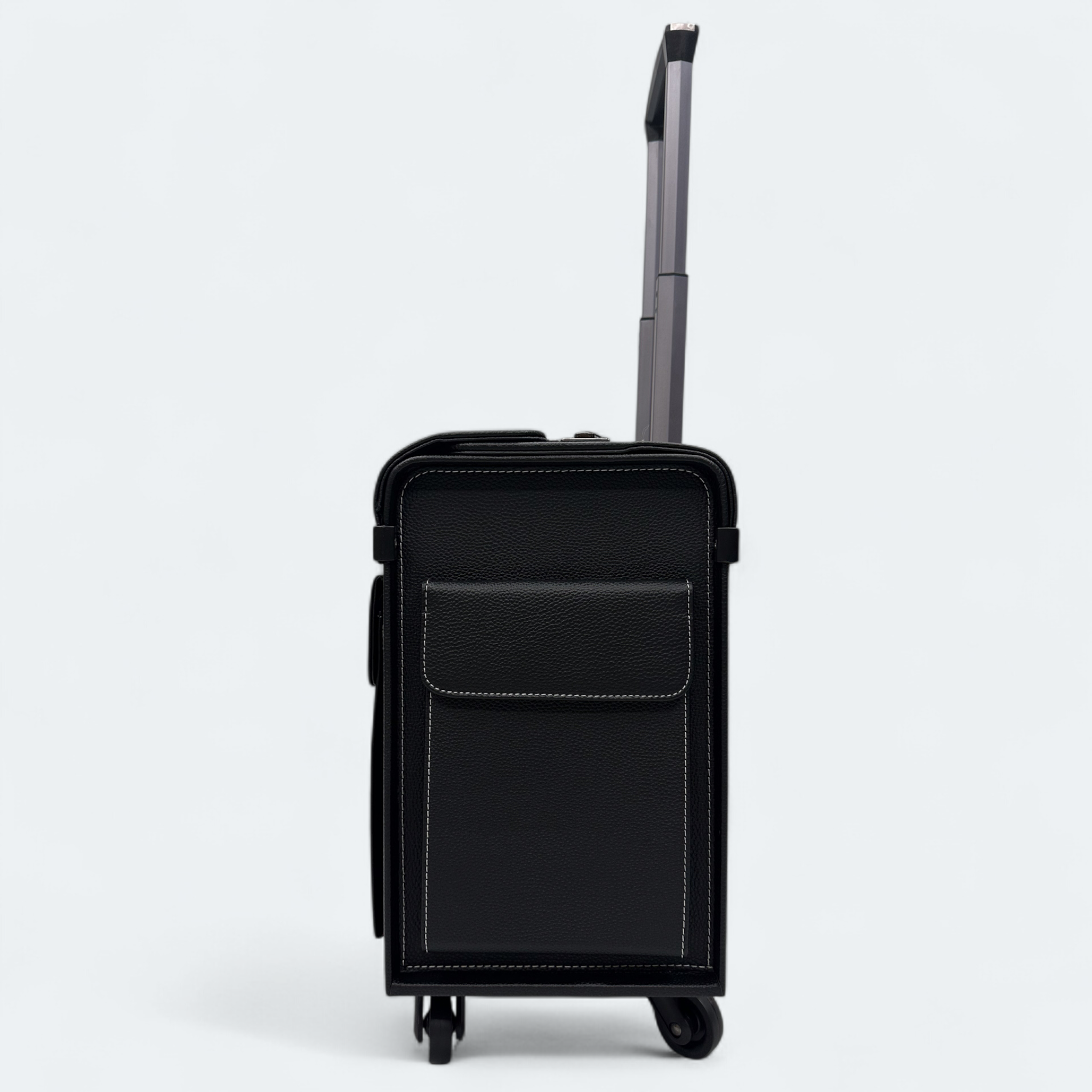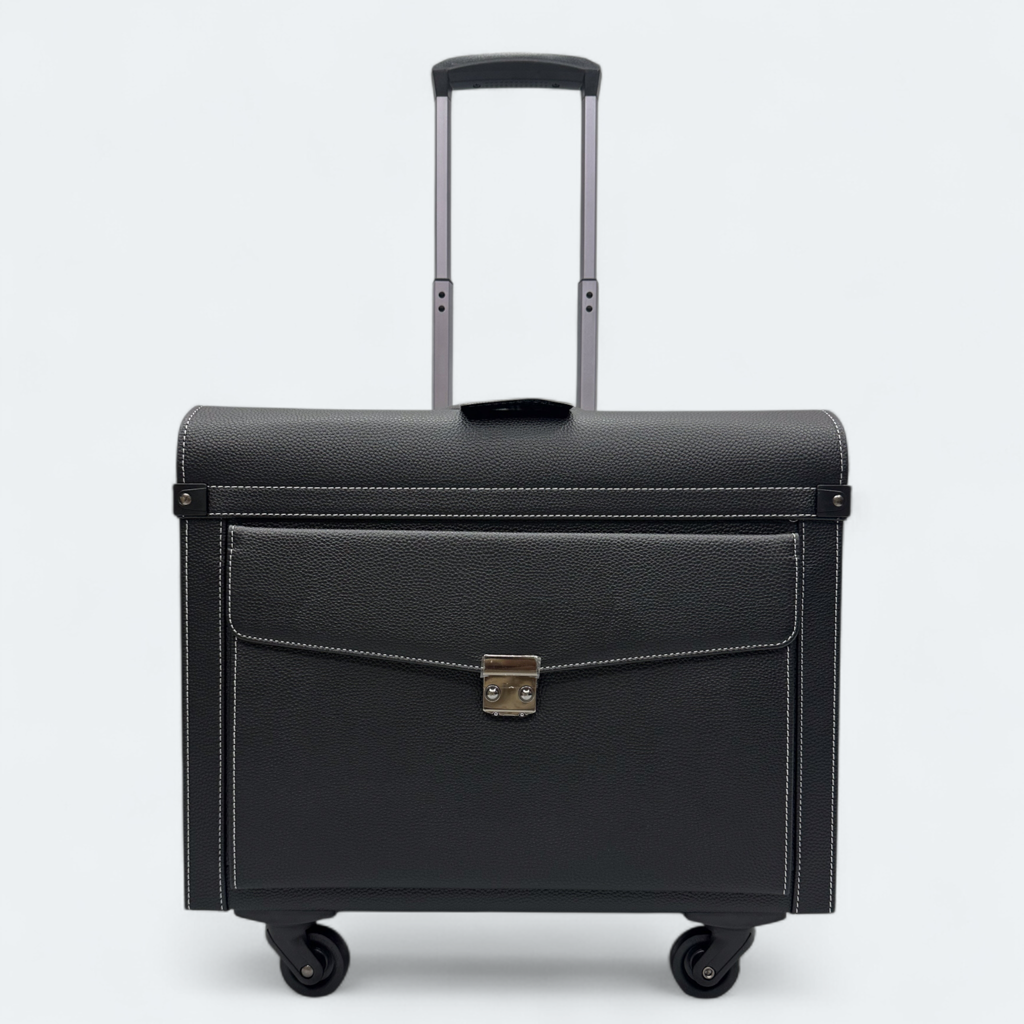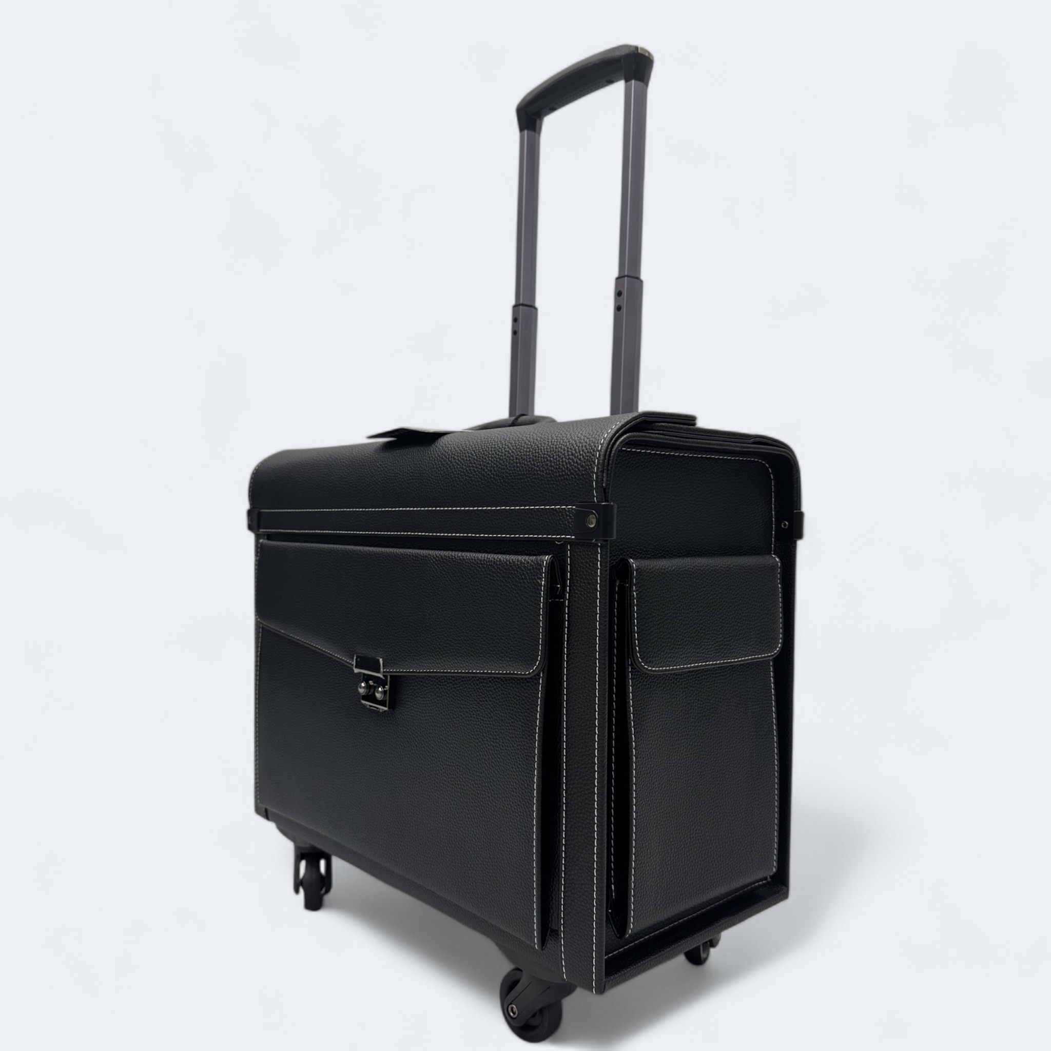 Four Wheel Artificial Leather Black Color Pilot Cabin Luggage